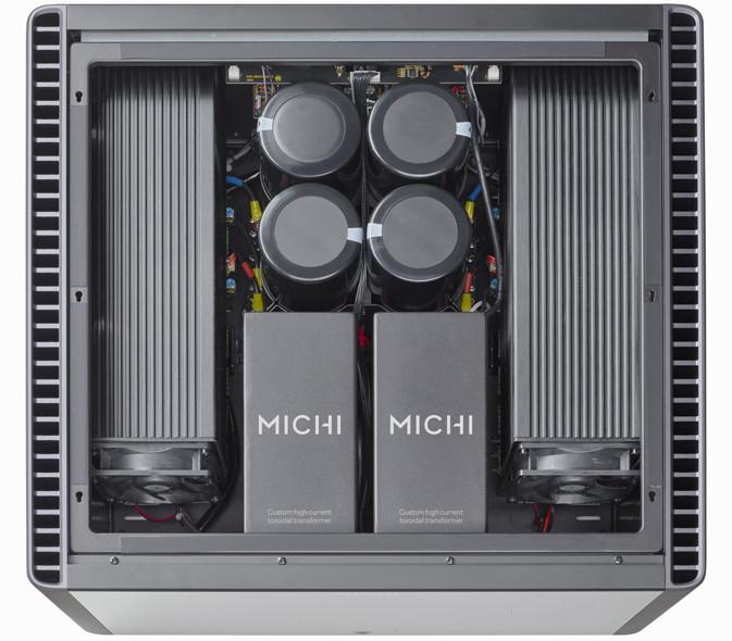 Der Michi S5 Stereo-Endverstärker ist das Topprodukt in seiner Klasse und bietet eine Class AB- Verstärkung von 500 Watt an 8 Ohm sowie 800 Watt an 4 Ohm. Die Doppel-Mono-Architektur wird von den zwei eigens entwickelten Ringkerntransformatoren versorgt, die zusammen eine Leistung von 2200 Watt bieten. Die Ringkerntransformatoren sind in epoxidgefüllten Gehäusen gekapselt, die Rauschen und Vibrationen extrem reduzieren. Die 4 britischen, patentierten Speicherkondensatoren mit einer Gesamtkapazität von 188. 000uF liefern die außergewöhnliche Bassenergie bei gleichzeitiger Beibehaltung präziser Signaldetails. Die 32 Hochstrom-Ausgangstransistoren gewährleisten höchste Genauigkeit und exaktes Timing auch unter schwierigsten Lastbedingungen.